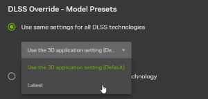 - Select “Latest” under “Use same settings for all DLSS technologies“