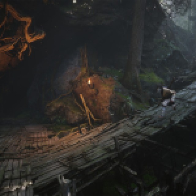 Shortly after the Marsh of the White Mist shrine, you’ll encounter an enemy on a wooden bridge. Defeat the enemy to save Shen Monkey, who will invite you inside his cave.
